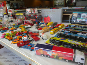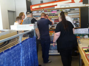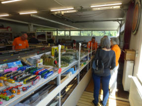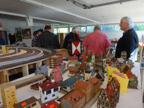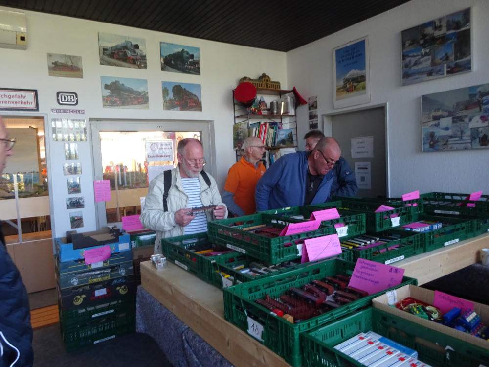 Modelleisenbahn-Flohmarkt am 26. und 27. April 2025Sechs Monate nach dem letzten Flohmarkt wurde schon wieder aufgebaut, was wir alles an den Mann und die Frau bringen wollten. Eine gewisse Routine stellt sich bei den Vorbereitungen schon ein, aber es sind immer wieder noch neue Teile dabei. Neben den Loks und Wagen mit entsprechender Ausstattung wurde auch viel allgemeines Zubehör verkauft, wie Häuser, Bäume, verschiedenste Autos, Fachliteratur und vieles mehr.