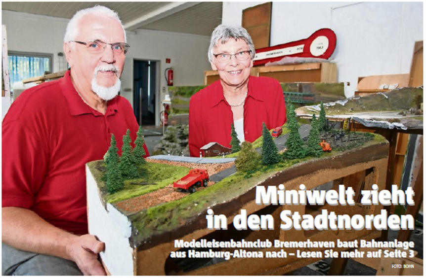 7. Juli 2019 SONNTAGSjOURNAL „Es ist ein Glücksfall für uns“, sagt der 67-Jährige. Bodenbe-läge wurden in dem großen Geschäftsgebäude vorher ver-kauft, das Vereinsmitglied Hans Jörg Mende gehört. Und hier kann sich der MECB ausbreiten – zumindest auf ei-nem Teil der insgesamt 260 Quadratmeter. „Auf dem Rest sollen zwei weitere Modell-baugruppen tätig werden“, sagt Henk Veldkamp. Doch auch wenn es ein Zentrum für den Modellbau werden soll: „Der MECB bleibt als Gruppe selbstständig, und der Name bleibt erhalten“, betont der Gruppenleiter. Der MECB ist eine Frei-zeitgruppe der Stiftungsfami-lie Bahnsozialwerk und hat derzeit 20 Mitglieder. Sie be-steht seit nunmehr 36 Jah-ren. Ursprünglich hatte der MECB sein Domizil in Mit-te, in der Grenzstraße. „Dort hatten wir eine 40 Quadrat-meter große Anlage – aber leider keinen Platz, um uns zu erweitern“, sagt der 67-Jährige. Besucher hätten be-reits bemängelt, dass es nichts Neues mehr gebe. Das soll sich nun ändern. In dem neuen Gebäude an der Langener Landstraße ist derzeit nur der MECB tätig. Große Teile der Anlage selbst stehen noch in Einzel-teile zerlegt herum, aber es sind bereits einige Metall-streben zu sehen, und auf dem Fußboden liegen Mar-kierungen. Henk Veldkamp hat die fertige Anlage schon vor Augen und kann sie auch zeigen – als Modell aus Styropor und Pappe im Maßstab 1:10. Es hat einen kompletten Gleisplan und kann sogar geöffnet werden, um die darunter liegenden „Schattenbahnhöfe“ zu zei-gen. Dort werden derzeit in-aktive Züge geparkt. Der Be-reich sorgt auch dafür, dass es einen Rundlauf gibt. Aus drei großen Attraktio-nen soll die neue Anlage be-stehen. „Einen Teil davon nimmt unsere Paradestrecke ein. Die mussten wir zerle-gen, um sie hierher zu schaf-fen“, sagt Henk Veldkamps Frau Ulla, die selber im MECB aktiv ist. Und Henk Veldkamp freut sich darüber, dass die Strecke komplett in die neue Anlage integriert wird: „Hier können 4,50 bis 5 Meter lange Züge in voller Länge fahren“, sagt er mit leuchtenden Augen. Die Pa-radestrecke soll die lange Strecke der L-Form bilden. Die beiden anderen Teile werden ebenfalls Hingucker: ein großer Bahnhof mit mehreren Gleisen und ein Bahnbetriebswerk. „Dabei handelt es sich um eine Doppeldrehscheibe, bei der die Einzelscheiben in-einandergreifen“, schwärmt Henk Veldkamp. Und für dieses Bauwerk gibt es ein konkretes Vorbild: das Bahnbetriebswerk in Ham-burg-Altona, das 1982 sei-nen Betrieb einstellte. „Das wollen wir möglichst detail-getreu nachbauen“, sagt Henk Veldkamp und zeigt auf ein Holzbrett, auf dem die Doppeldrehscheibe be-reits montiert ist, darunter ein Plan aus Altona. „Wir haben versucht, die Original-pläne zu bekommen. Aber die gibt es leider nicht mehr“, bedauert er. Brennendes Finanzamt Ansonsten handelt es sich um reine Fantasielandschaf-ten, die auf der neuen Anlage dargestellt werden: Vom Flachland bis zum Gebirge ist eine Menge dabei. Und die Anlage soll sich zukünftig auch leicht verändern kön-nen. „Wir legen Teile in Mo-dulbauweise an, sodass sie leicht ausgetauscht werden können“, sagt Henk Veld-kamp. Und zudem soll es im-mer wieder kleine Details ge-ben, sei es ein brennendes Fi-nanzamt, Schweißarbeiten im Bahnbetriebswerk oder die Kleingartenanlage – alles mit entsprechenden Effekten. Erstmals werden Besucher rund um die Anlage gehen können. „Das war vorher nicht so. Da gab es nur einen Besuchergang in der Mitte“, sagt Ulla Veldkamp. Jetzt ist genügend Platz. Besucher können stehen bleiben, ohne andere zu behindern, und rollstuhlgerecht ist es auch noch. Und die Gäste werden zudem Einblicke in die Un-terwelt der Anlage bekom-men. „Wir werden Glas-scheiben einbauen“, ver-spricht Henk Veldkamp. Be-trieben wird die Modellei-senbahn vom Wartungsgang in der Mitte der Anlage. Steuerung teils automatisch Gefahren werden soll teils automatisch, teils per Hand. „Wie die Automatik aussehen wird, müssen wir noch schauen. Entweder gibt es ei-ne eigenständige Anlage oder einen Computer“, sagt Henk Veldkamp. Mit diesen Din-gen kennt er sich aus, immer-hin hat er für eine Firma ge-arbeitet, die sich mit Bahnbe-triebstechnik für ICE be-schäftigt hat. Doch seine Lie-be für Modelleisenbahnen ist viel älter: „Ich habe als Junge ein Einstiegsset in HO be-kommen. Daraus ist mit der Zeit mehr geworden“, erin-nert sich der 67-Jährige. Sein Lieblingsstück sei ei-ne Dampflok 18201 von Ro-co, verrät er. Seine Anlage im Dachgeschoss sei mit 13 mal 6 Metern eher beschei-den, meint er. Wie gut, dass er bald die große Anlage in Speckenbüttel zur Verfügung hat. Dort lassen die Vereins-mitglieder neben den Club-eigenen Bahnen dann auch ihre eigenen fahren. Doch bis die neue Anlage ganz fertig ist, wird es wohl drei bis vier Jahre dauern, schätzt Henk Veldkamp. Doch das sei gut für die Be-sucher: „So gibt es immer et-was Neues zu sehen.“ Am 22. September will der MECB seine neuen Räume an einem Tag der offenen Tür vorstellen – mit einem Teil der Anlage und seinen Plänen. Und wer immer über Baufortschritte informiert sein möchte, kann das Bau-tagebuch auf der Homepage lesen.www.mecbremerhaven.de Modellbau: Bremerhavener Gruppe baut in Speckenbüttel eine 100 Quadratmeter große Anlage Doppeldrehscheibe lässt Augen  von Eisenbahnfans leuchten VON CHRISTOPH BOHN  SPECKENBÜTTEL. Es ist wohl der Traum eines jeden Modelleisen-bahn-Fans: eine 100 Quadratmeter große Anlage in L-Form. Henk Veldkamp verwirklicht derzeit diesen Traum. Er ist Gruppenleiter des Modelleisenbahn-Clubs Bremerhaven (MECB), und dieser be-zieht derzeit seine neuen Räume an der Langener Landstraße. Dort wird der Fahrbetrieb in Spur HO und Gleichstrom aufgebaut. Im September wollen die Modelleisenbahner schon einen Teil der Anlage präsentieren – bei einem Tag der offenen Tür. Im Modell können Ulla und Henk Veldkamp die neue Anlage schon vorführen. Im Hintergrund ist das Kernstück des ne