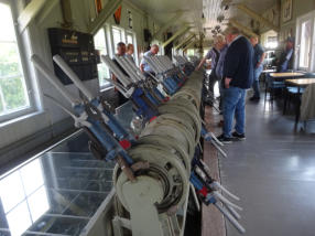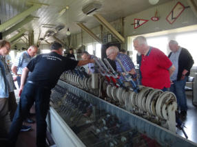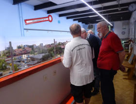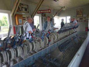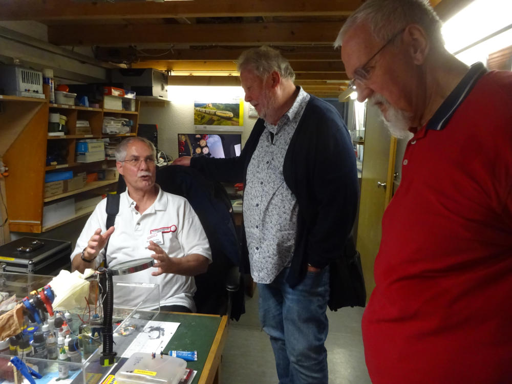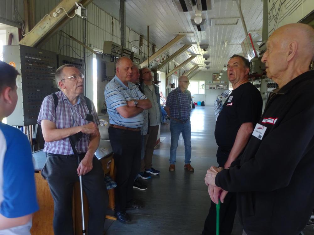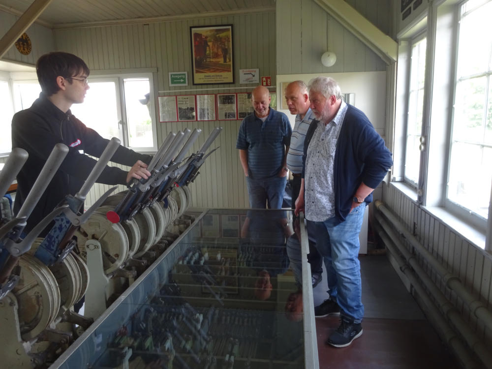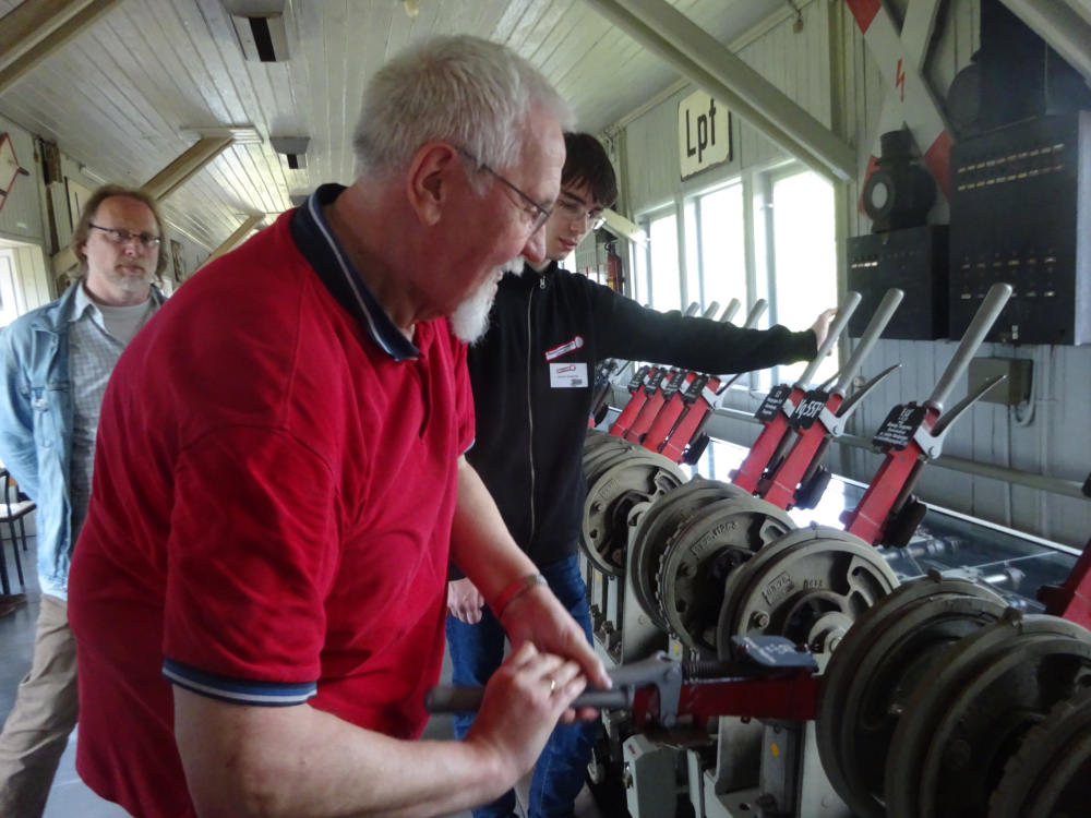 Besuch beim MEV Lehrte am 1. Juni 2025Mit neun Mitgliedern haben wir einen gemeinsamen Besuch des Modelleisenbahnvereins Lehrte e.V. unternommen. Dieser Verein hat das dortige – 1986 stillgelegte – mechanische Stellwerk Lpf übernommen und betreibt es als Technikmuseum. Die Mitglieder haben uns mit viel Freude und Engagement die alte Stellwerks-Technik erläutert. Dazu haben sie Blockwerke benachbarter Stellwerke integriert, um die Funktion und Sicherungstechnik der mechanischen Stellwerke anschaulich vorzuführen. Im Raum darunter, wo früher der Spannwerksraum war, hat der Verein mit viel Liebe seine Modelleisen-bahnanlage – den Lehrter Personenbahnhof von 1960 – aufgebaut. Auch dort und in den darunterliegenden Arbeitsräumen wurde intensiv erklärt und gefachsimpelt. So haben wir auch einige Anregungen und Ideen mitnehmen können. Alles in allem waren es drei sehr interessante und lohnenswerte Stunden, die wir in Lehrte verbrachten, bevor es – natürlich mit der Bahn – wieder zurück nach Bremerhaven ging.